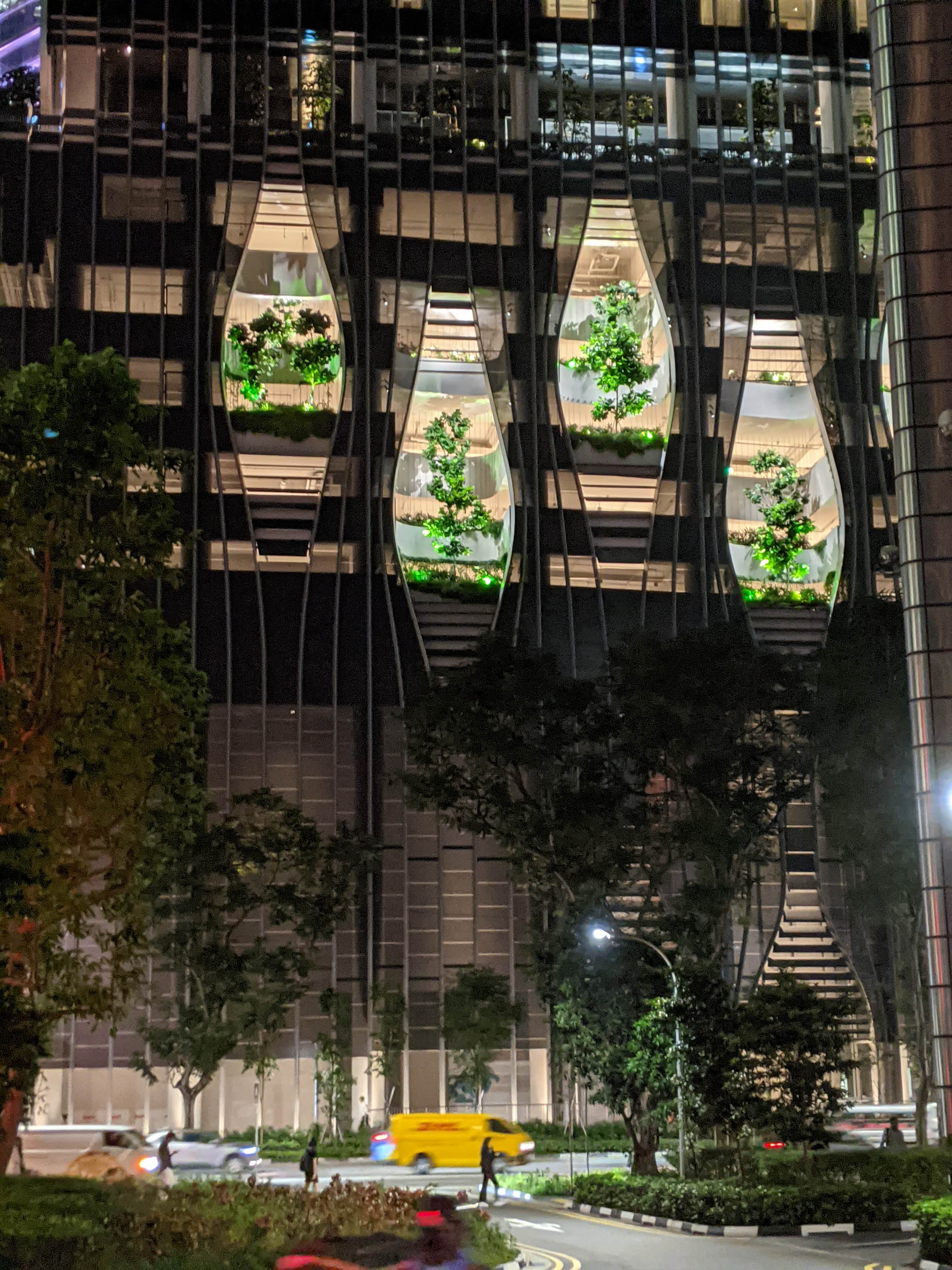 Tuesday, March 14. Last night, after dinner at “The Genius Cafe”, we took our last stroll of Singapore. They take this 20% greenery stuff seriously, viz.,