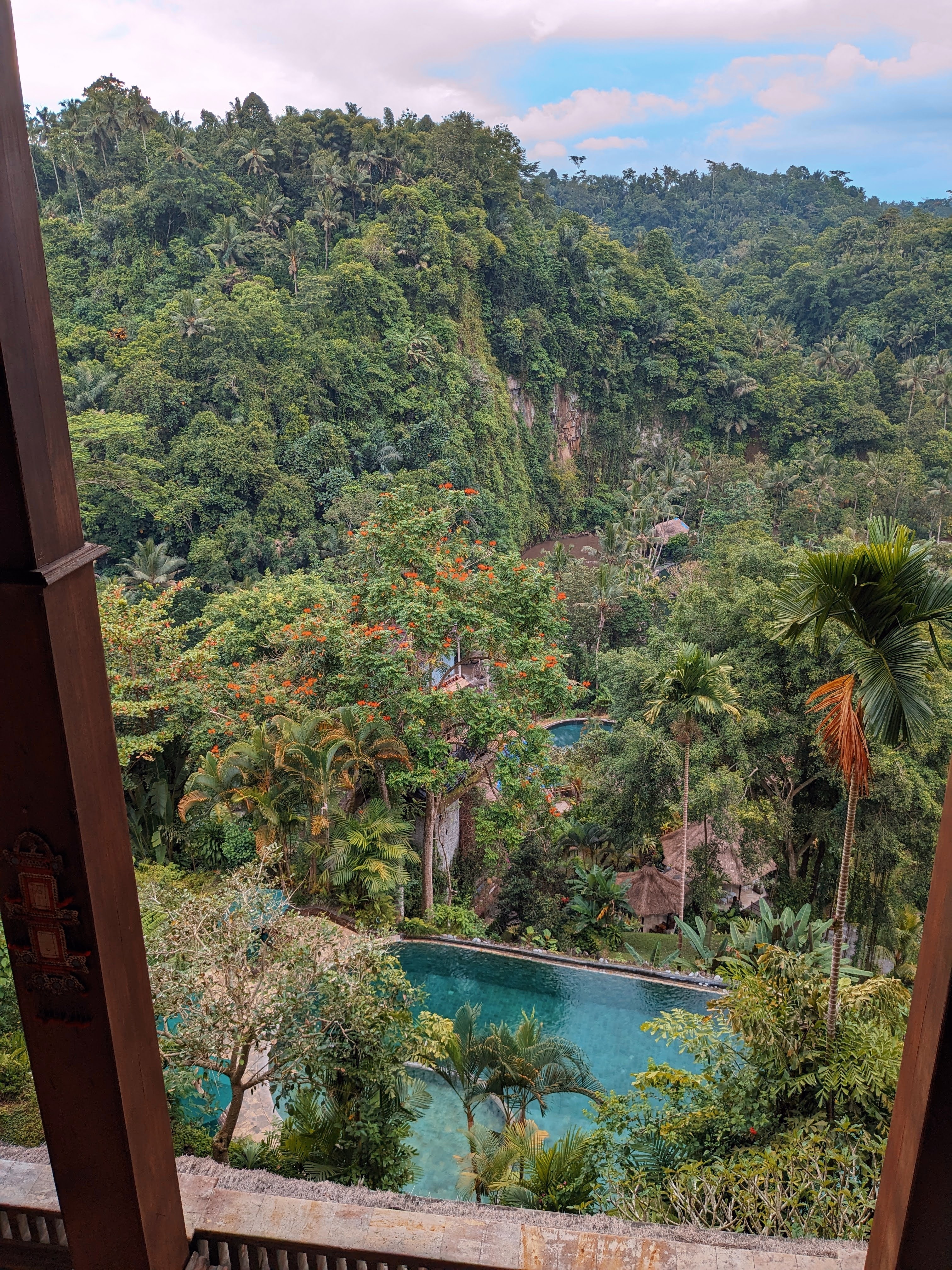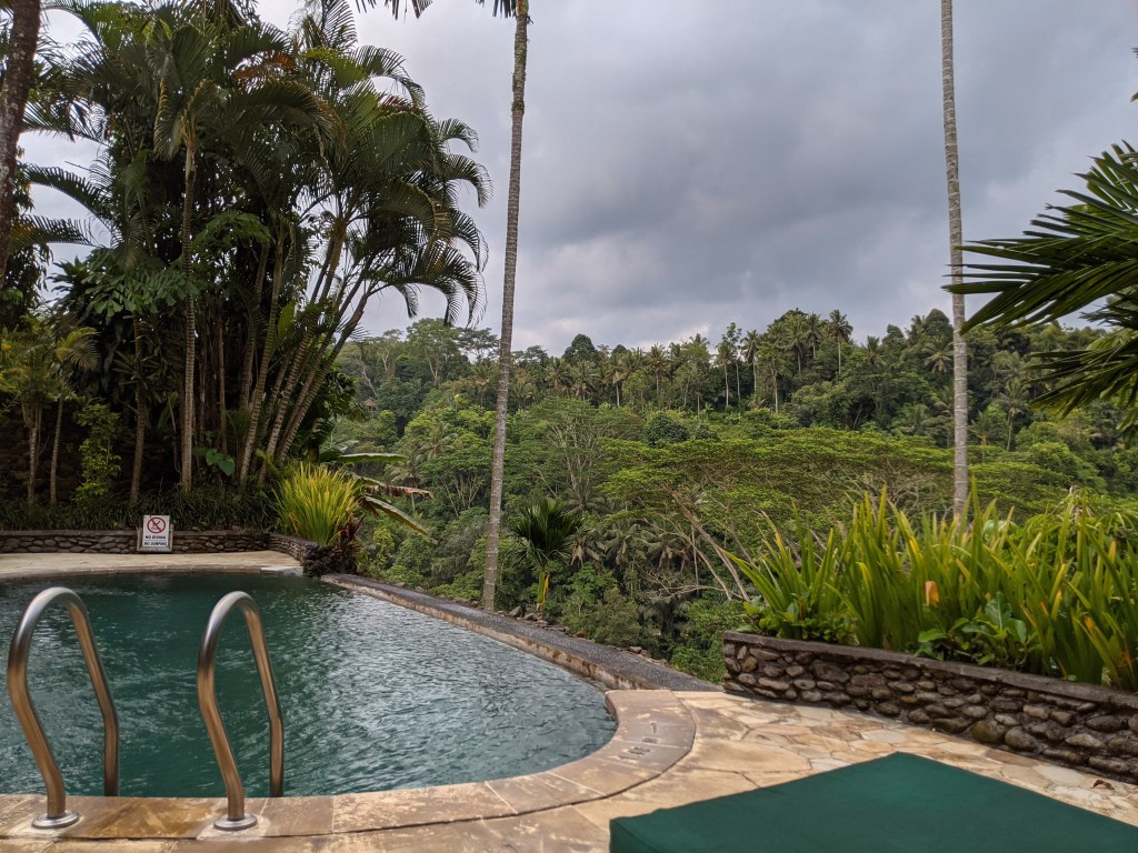 Not your typical Bali destination, since it’s way inland, not on a beach. Cooler, because it’s in the mountains. Each villa has its own small swimming pool with a view of the valley and the jungle.