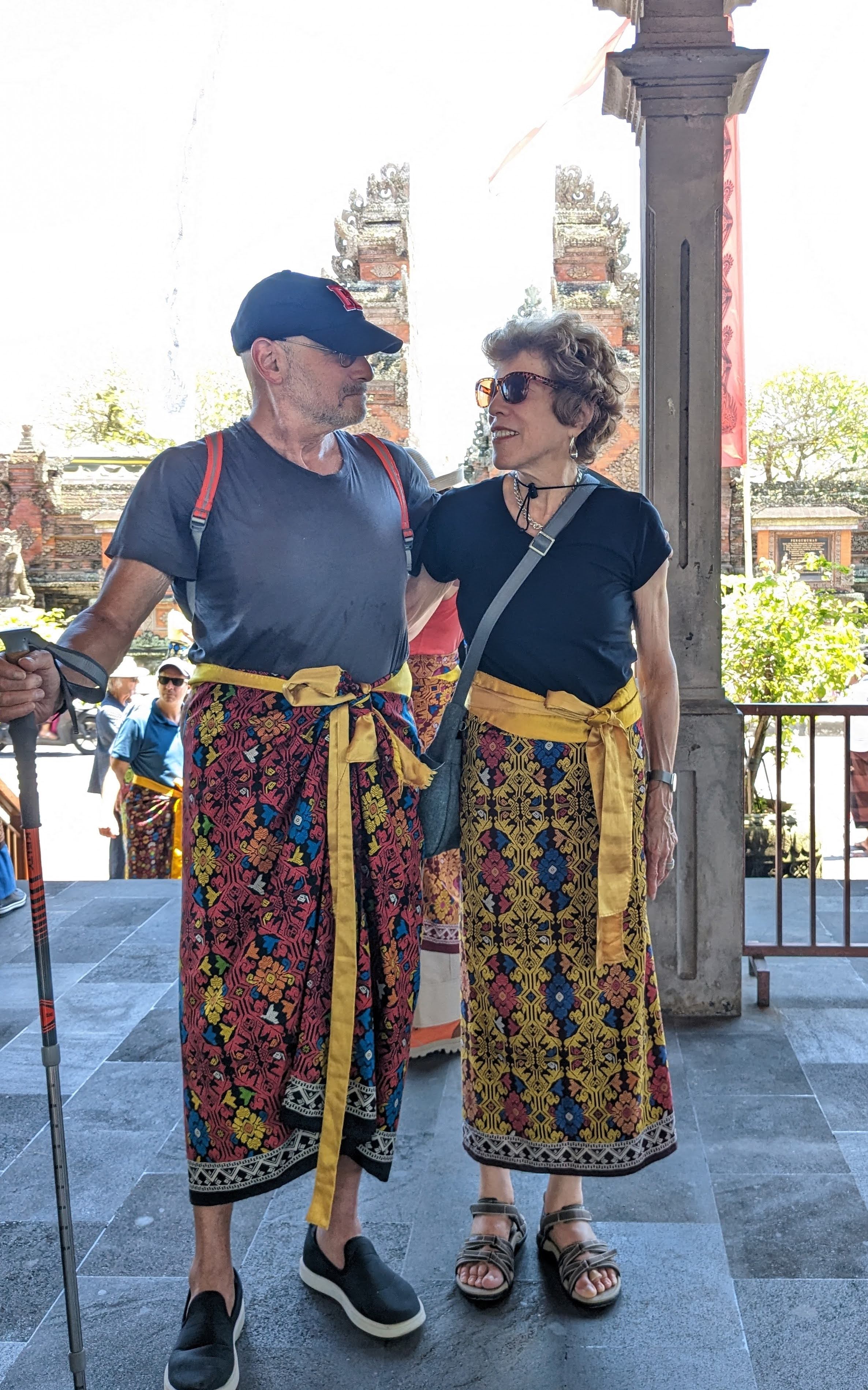 Arriving in Denpasar, Bali, in Indonesia, some difficulty with the Customs Declaration. The online system was not user-friendly, and some of our phones could not pick up the QR code, so we had to declare that we were “relatives” of another tour member whose phone did work. Nice to have an instant family!