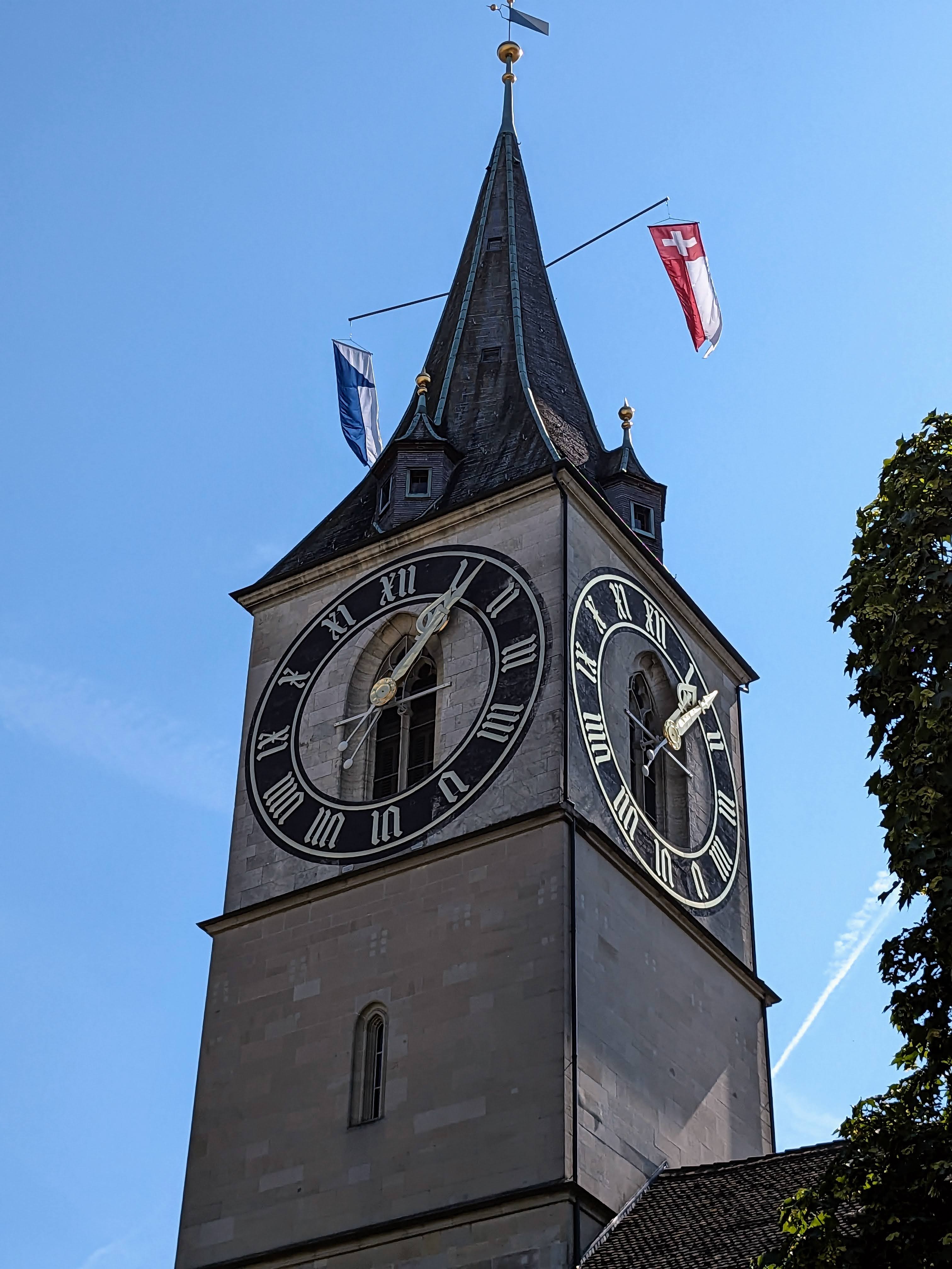 We’re informed that the town watchman lived above the clock. If he were to see a fire, he would ring an alarm and display a flag outside the window facing the direction of the blaze. Apparently it worked, since Zürich has no history of terrible fires.