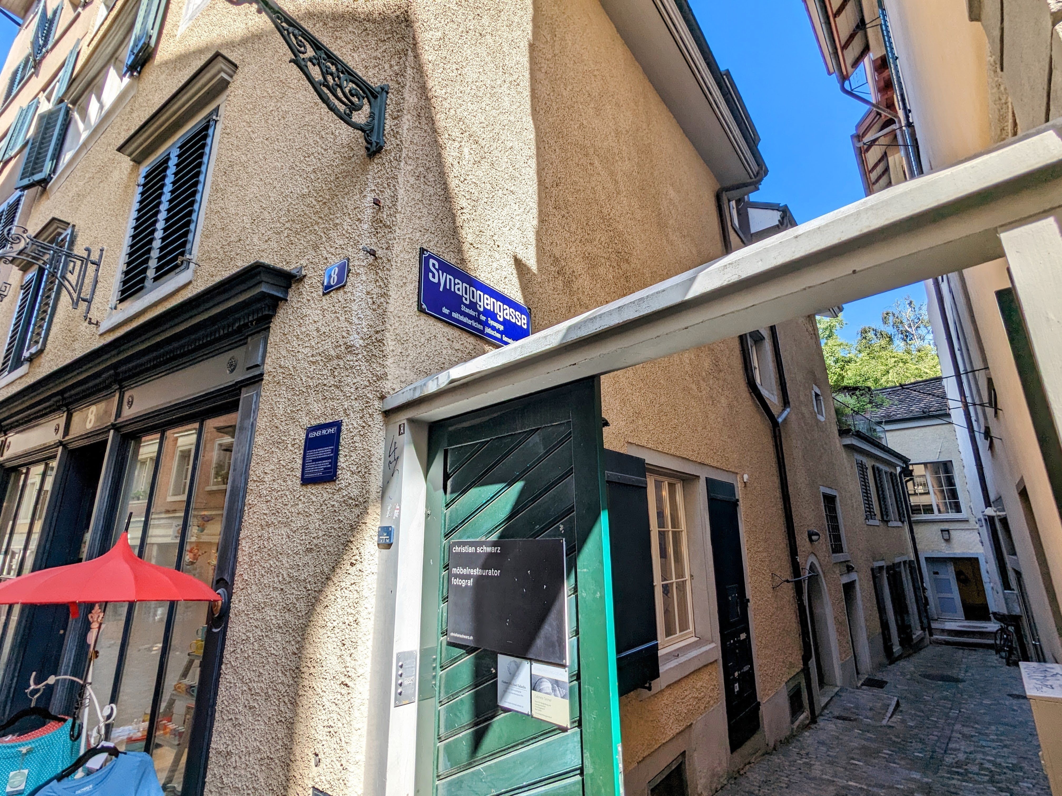 We continued onto the other side of the river, in the area called Niedersdorf (“nether town”). We came across Synagogenstrasse (lane of the synagogues):