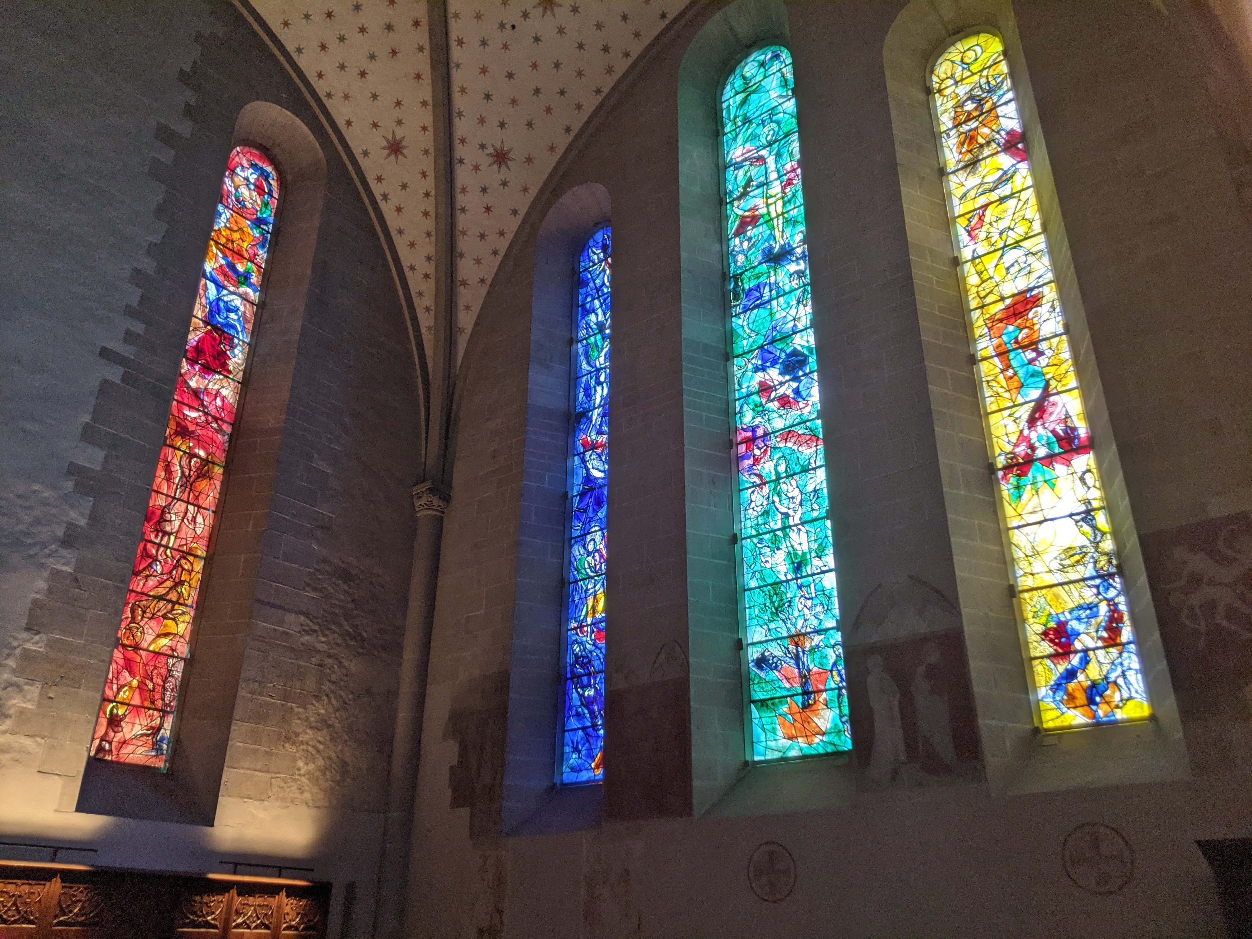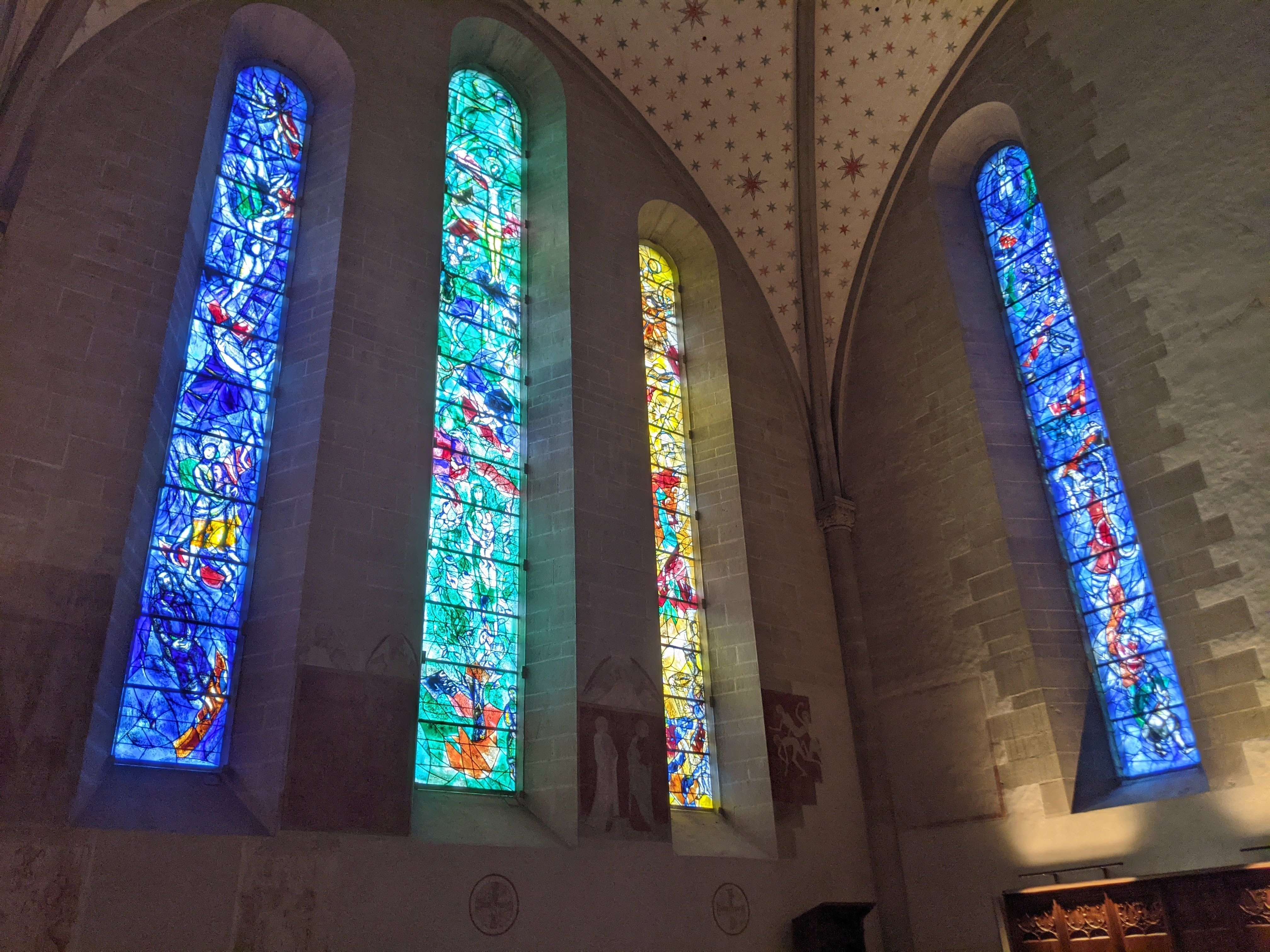 They deserve to be famous, particularly since Chagall didn’t learn to work in stained glass until his 70s. He attended their installation in his 80s. (So much for Biden being too old for a second term.)