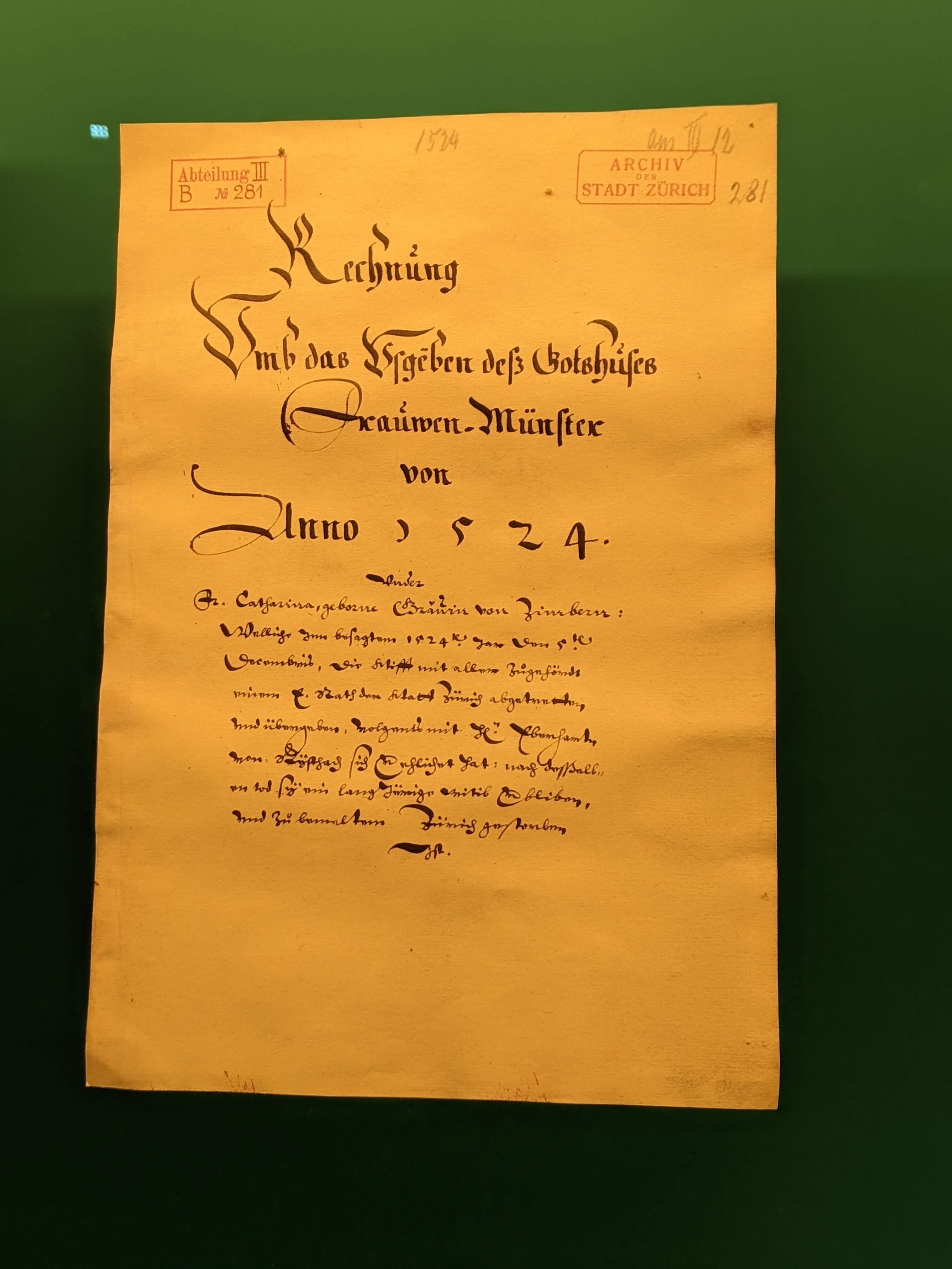 Like all the houses of worship in ZΓΌrich, this place started out as Roman Catholic. In 1524, in the midst of the Reformation, the FraumΓΌnster was ceded by the then Abbess (Catholic) to the City of ZΓΌrich (Protestant):