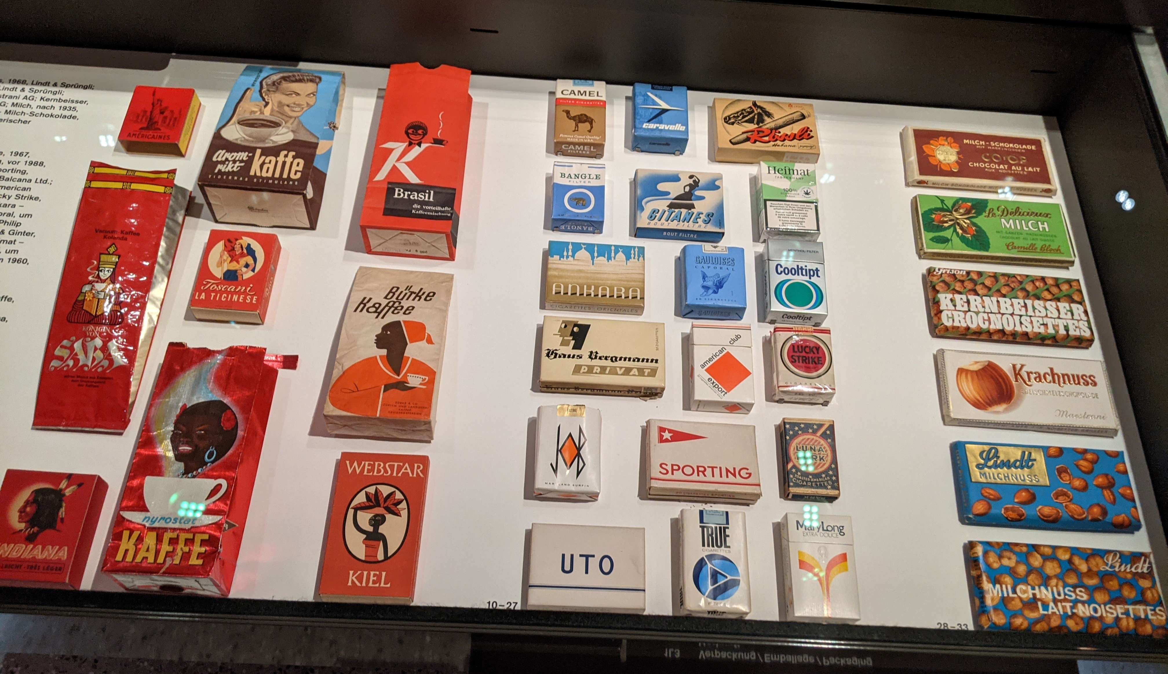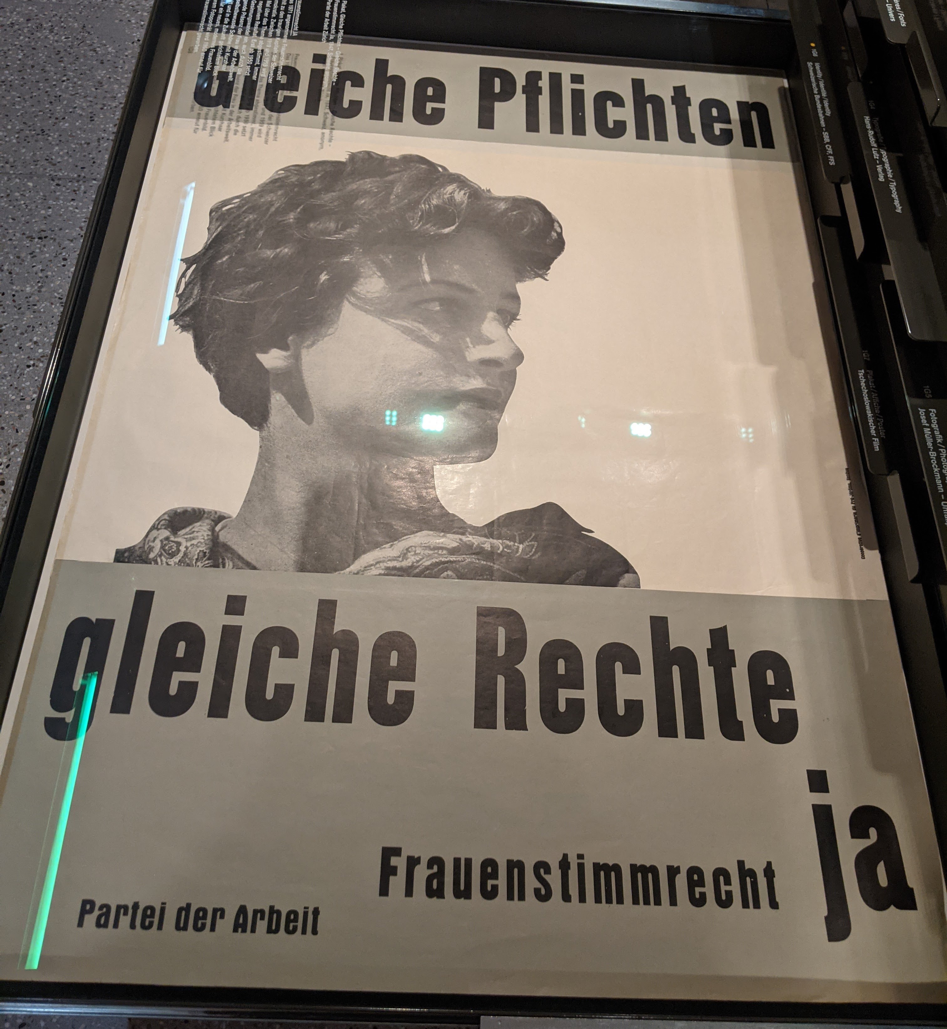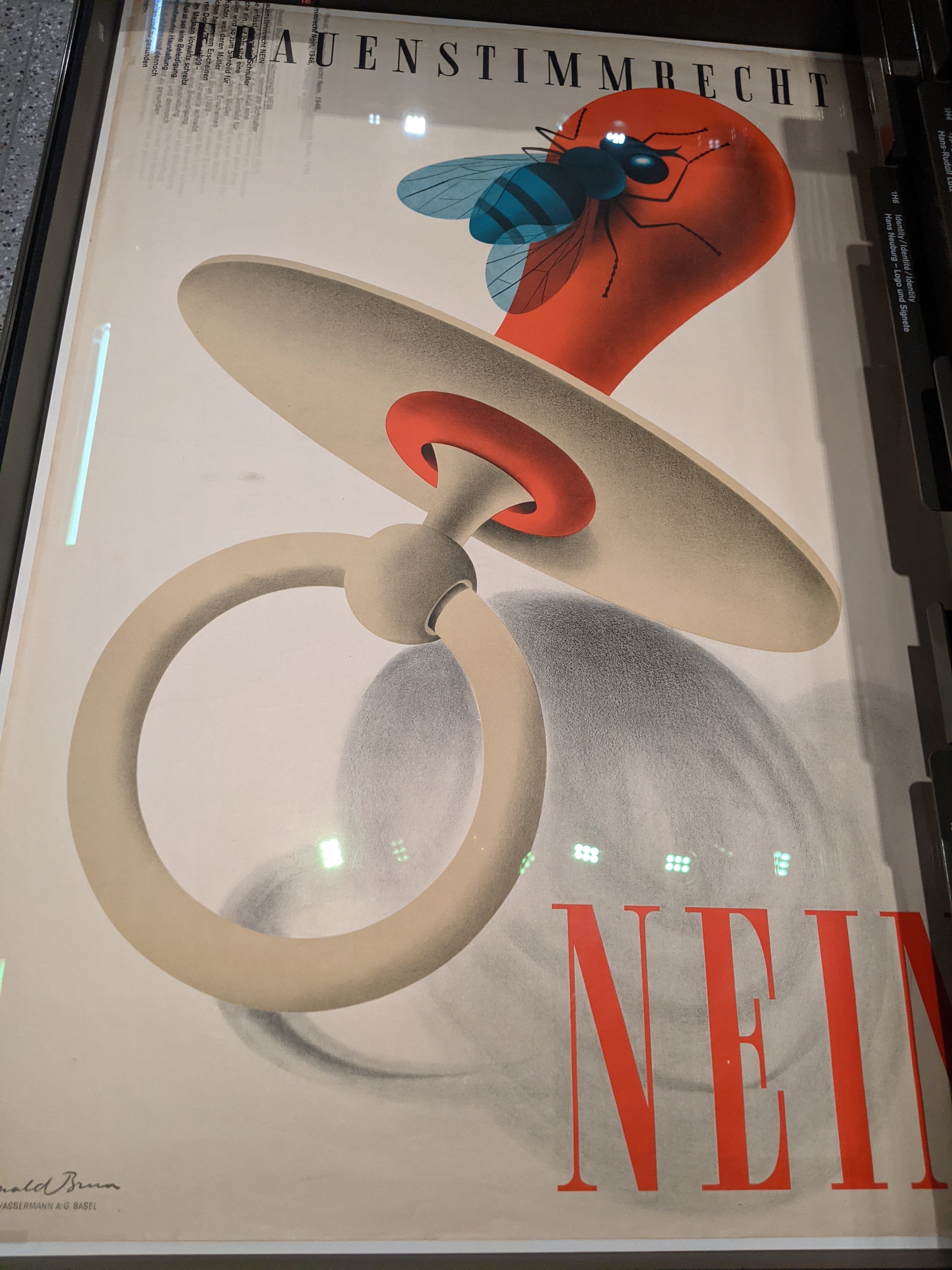 N.B.: Women didn’t get the vote in Switzerland until 1971. There were drawers containing displays of designs of packaging, e.g., for coffee, cigarettes and chocolate,