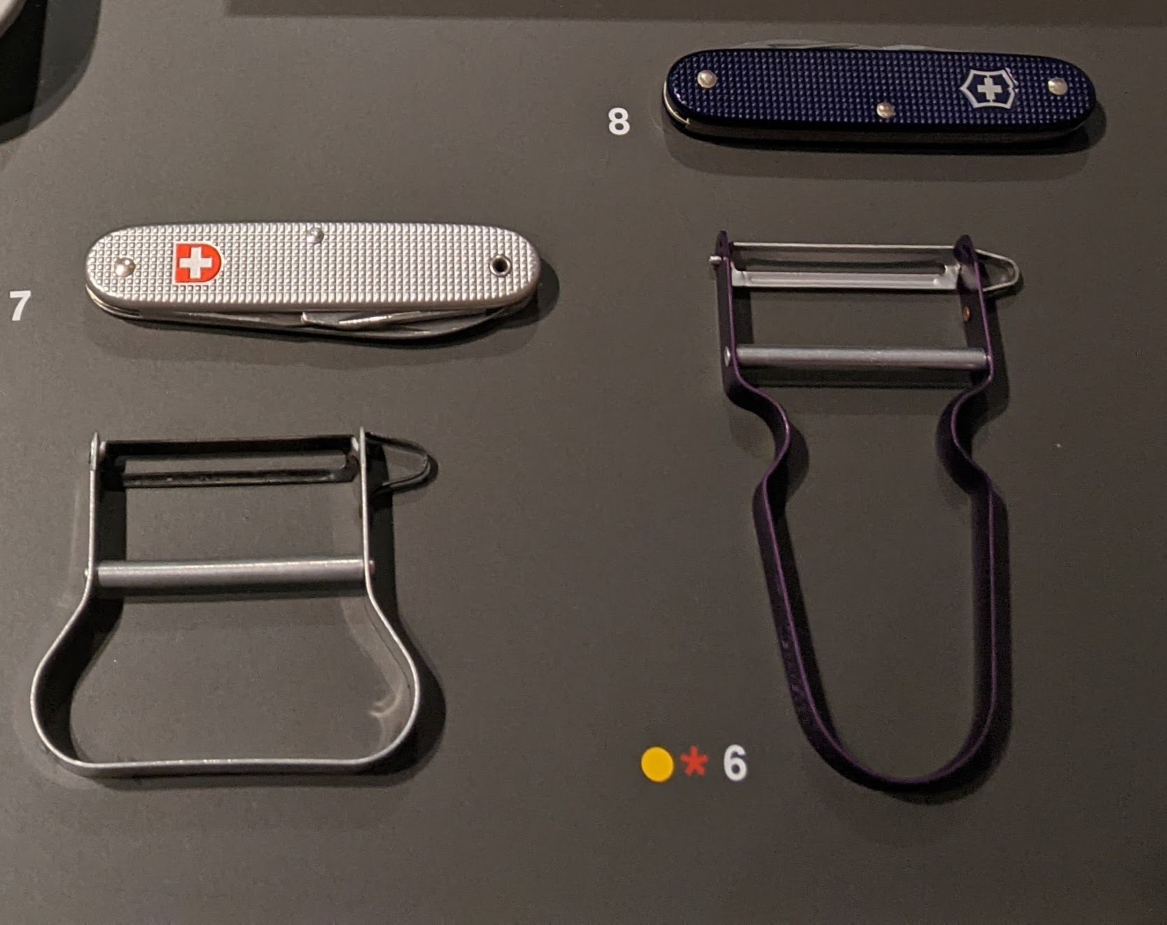 and household utensils like 1930s vegetable peelers (and the inevitable Swiss Army Knife).