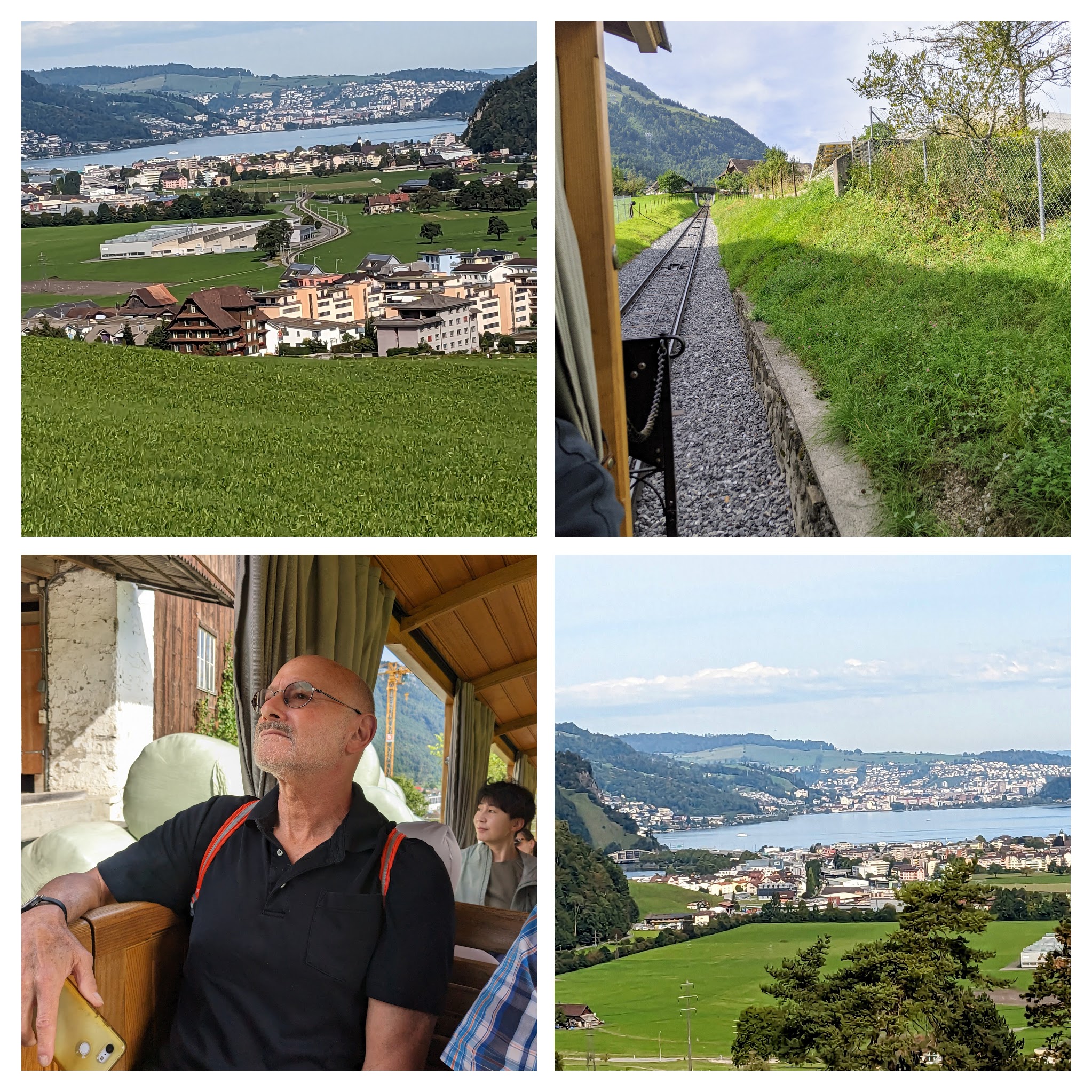 Third: Off To The Peaks. Today (Sunday) was the day we’d reserved for the mountains. In this case, a particular mountain, the Stanserhorn, which sits above the town of Stans (no relation, as far as I know, but an incentive to choose it) and stands 6,277 feet tall.
