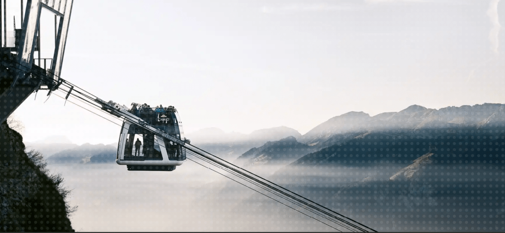 The funicular leaves you at a place farther up the mountain where you transfer to the CabriO, a double-decker cable car (the first in the world that has a roofless upper deck), which lets you head up to the summit of Stanserhorn in the open air. Below is a screenshot from CabriO website: