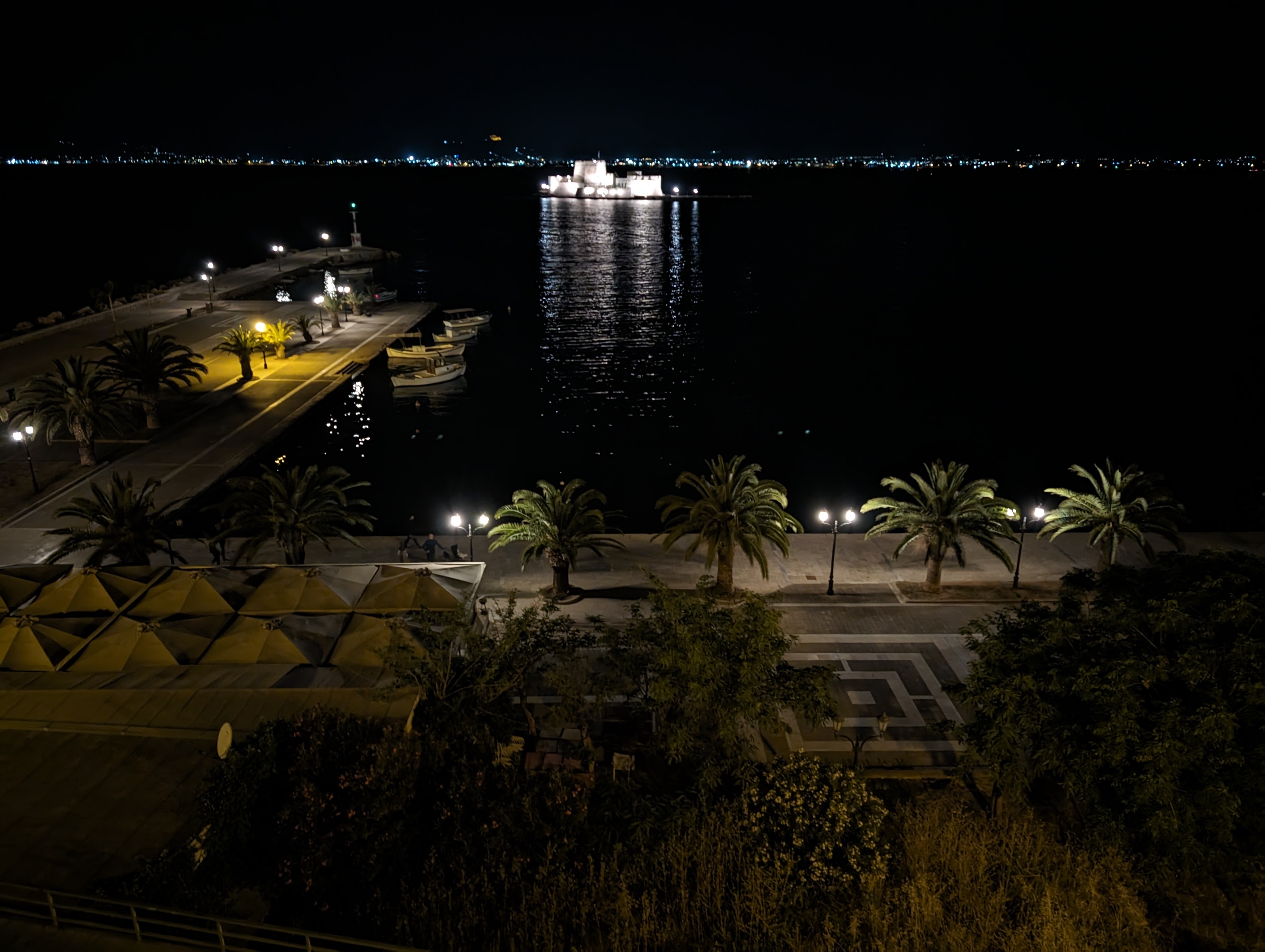 The day ended in Nafplion, which had been the capital of newly-independent Greece in the 1830s, liberated with the help of Admiral Bouboulina (our heroine, see previous post) . The hotel, the Amphitryon, has a lovely view of the harbor: