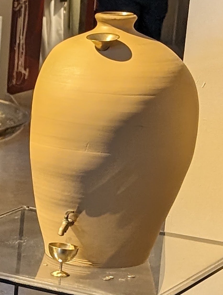 When the right amount of liquid is dispensed, the change in weight causes the lever to return to its original position. They were placed outside temples to sell measures of holy water.