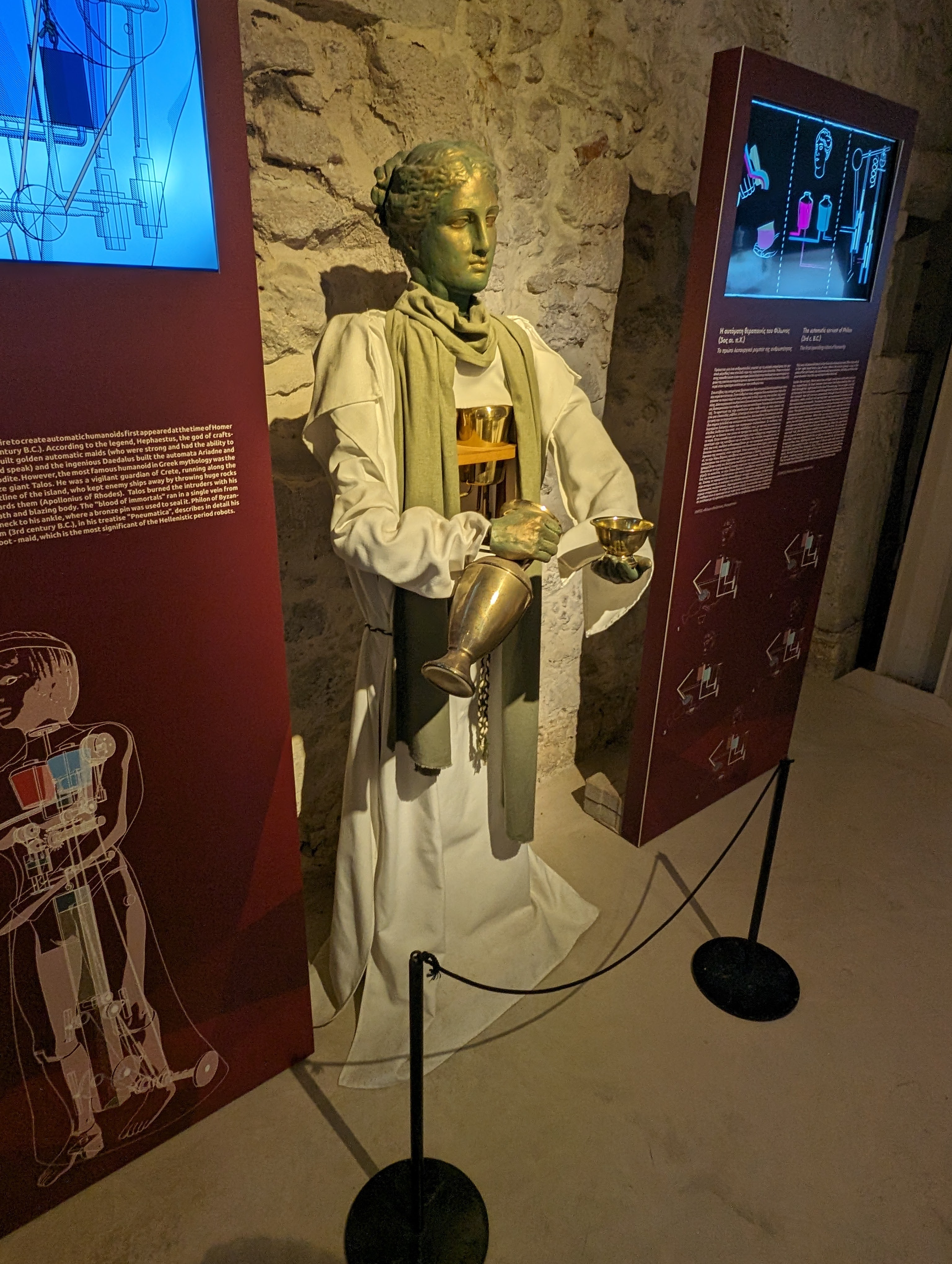 The Technology Museum is housed in Palazzo d’Ittar, one of Heraklion’s cultural heritage sites, built around 1,500 CE. It was way cool. All kinds of devices using Bronze Age technology to solve engineering problems and explain the natural world. Apparently, the technology of the ancient Greeks was shockingly similar to the beginning of our own modern technology.