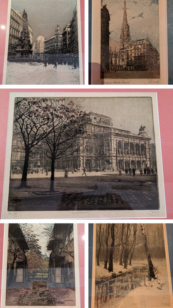 We ended our tour of the Jüdisches Museum with an exhibit of works by a Jewish illustrator, Emil Singer (no relation, as far as I know), who created etchings that captured lovely scenes of Vienna: