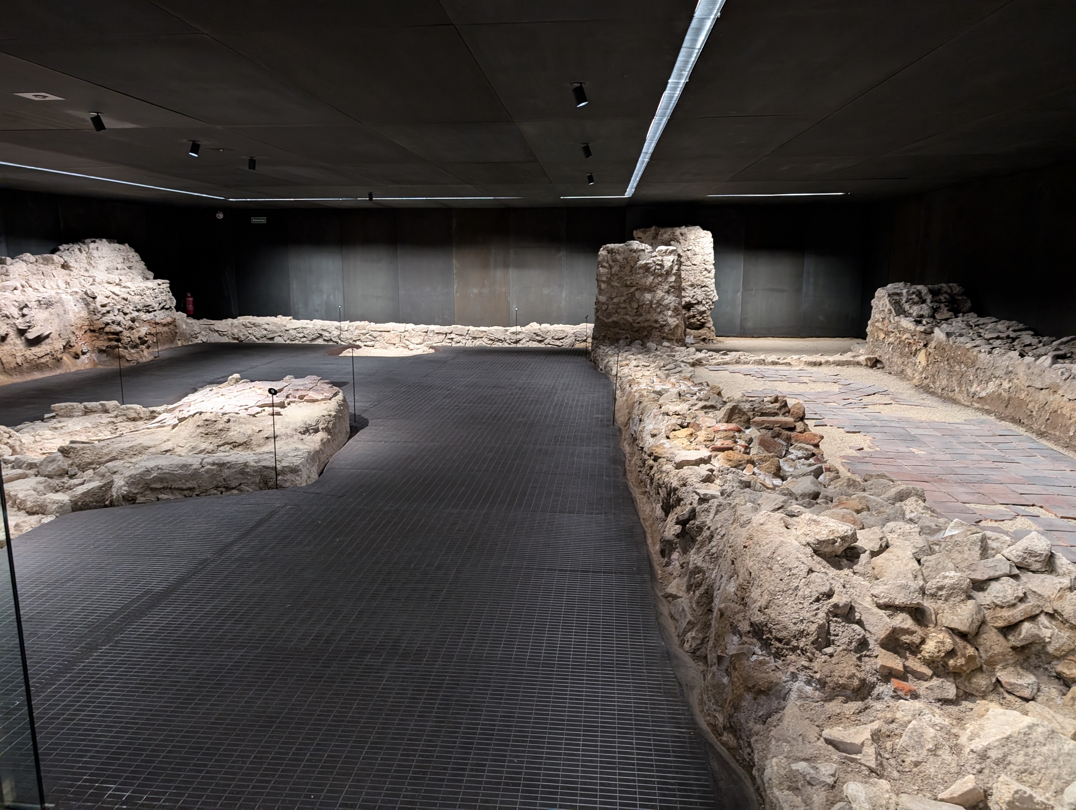 We then proceeded to the Judenplatz, where the Jewish community lived during the Middle Ages. It was the location of a synagogue that had been destroyed (what else is new?) due to ever-present antisemitism. Its foundations are preserved in the Judenplatz Museum (shown below are the women’s section on the right, the men’s on the left and the “bimah”, or pulpit, in the middle):