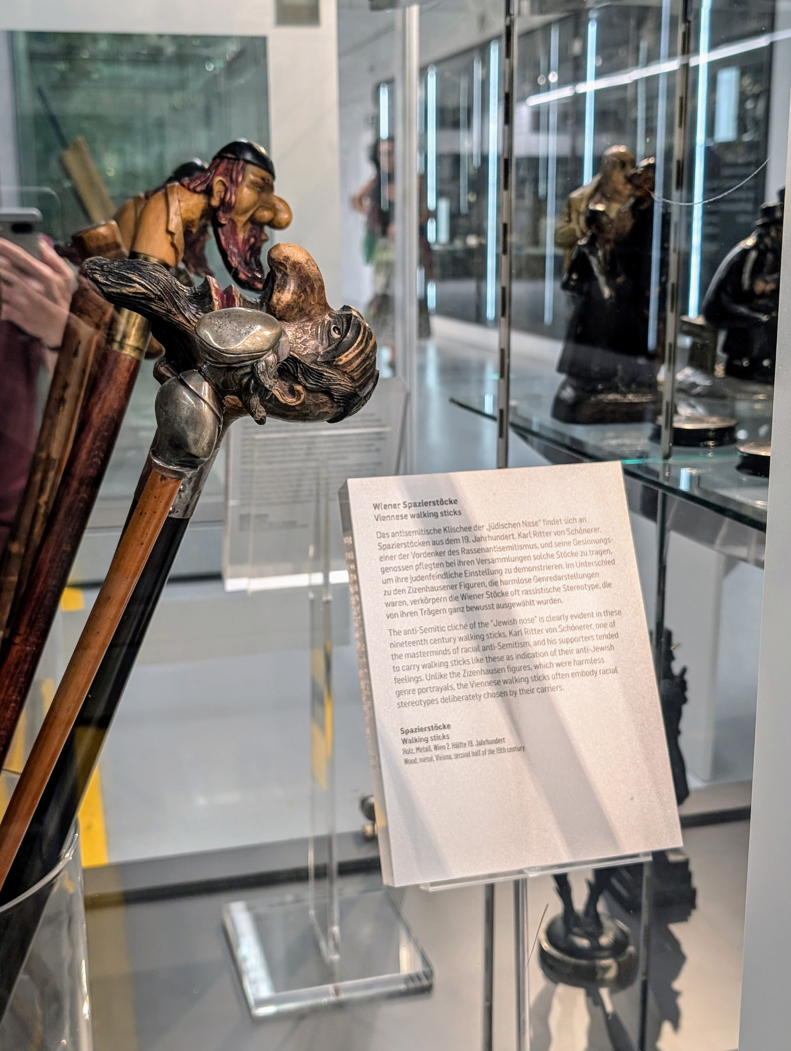 One of the exhibits featured walking sticks with antisemitic caricatures, whose proud owners maintained to show off their antisemitism: