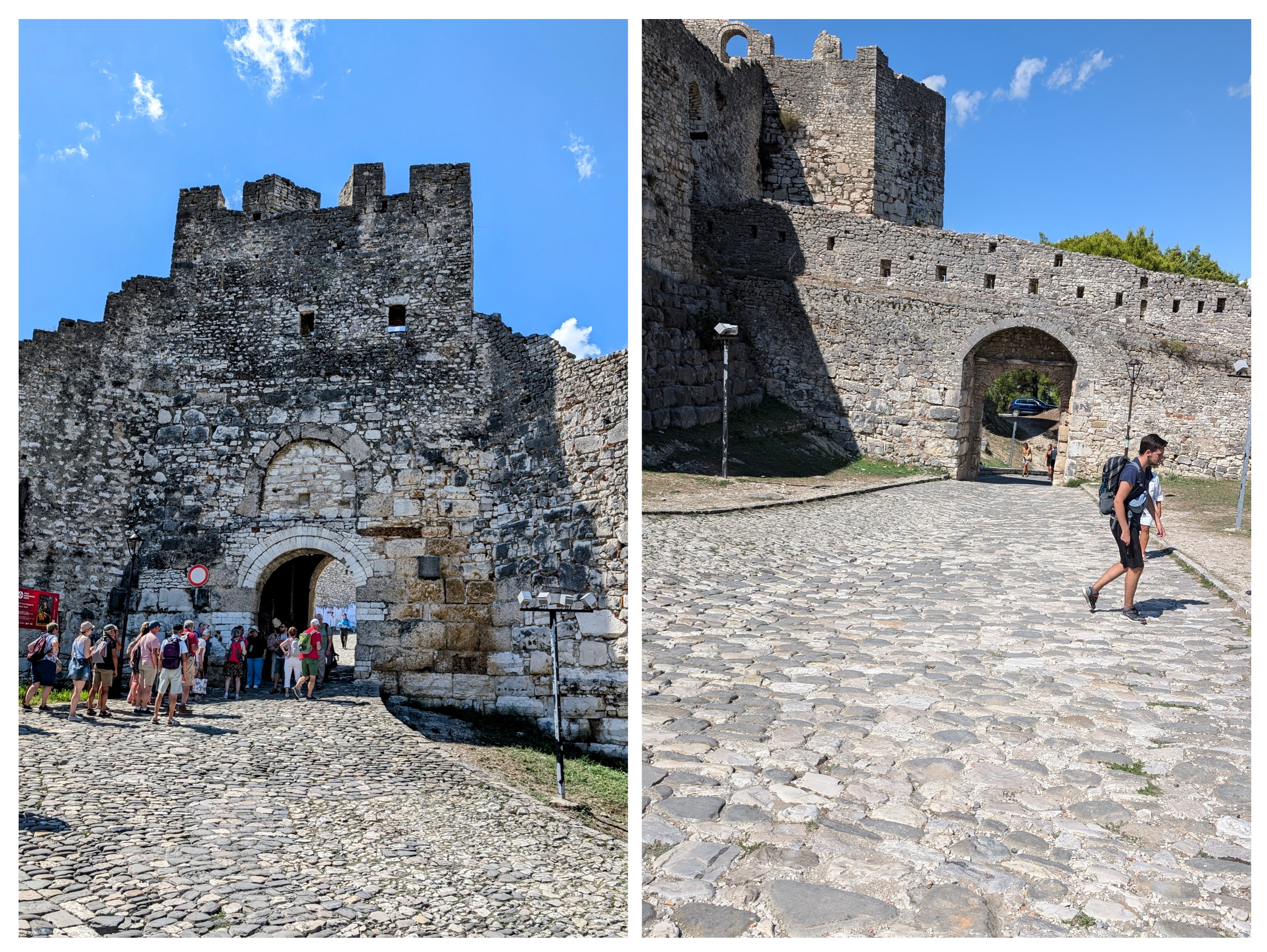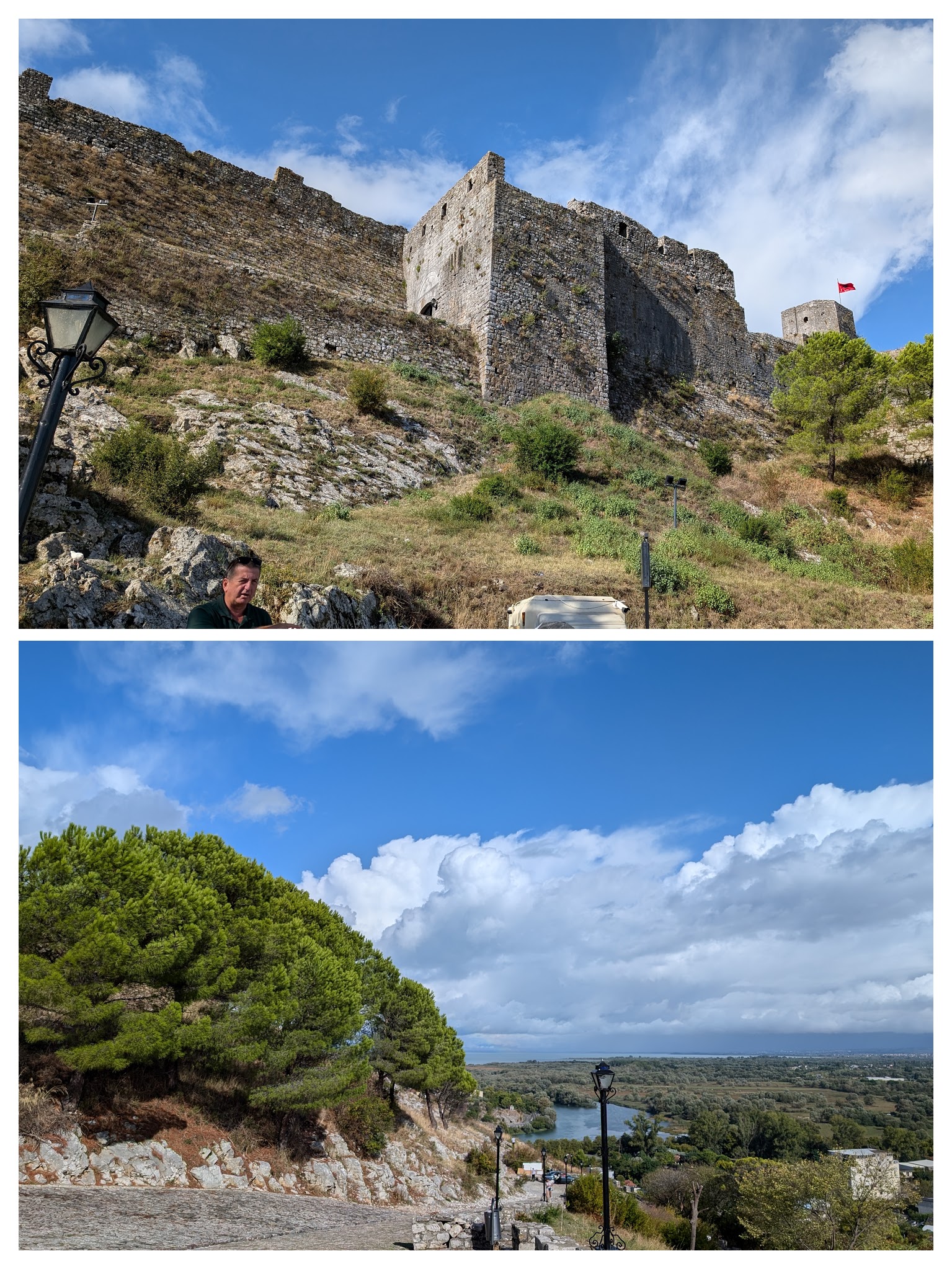 Saturday, September 14, 9:00 pm.  Awoke today at 5 am to the Adhan (oy, why so early?) We took the van to Rozafa Castle, the earliest detected walls of which date back to the Illyrian period (4th or early 3rd centuries BCE), although most of the remaining fortifications are Venetian. It sits atop a promontory overlooking the Buna and Drina rivers.