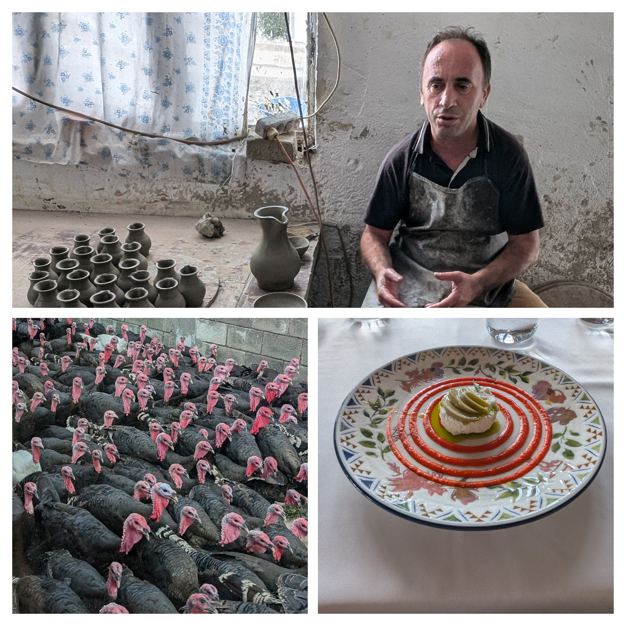 Friday, September 13, 8:30 pm.  This morning we said “mirupafshim” to Tirana, and headed north to Shkodër, the fifth largest city in Albania. On the way, we passed a parade of turkeys (no idea why–they don’t even celebrate Thanksgiving in Albania). Then Ilir had us stop at a family-owned pottery establishment, followed by lunch at a farm, Mrizi i Zanave.