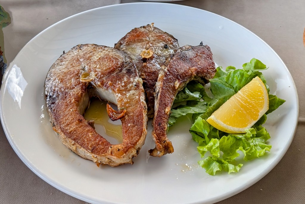 Lunch was lakeside. Ilir recommended that we try the local fresh-water carp.