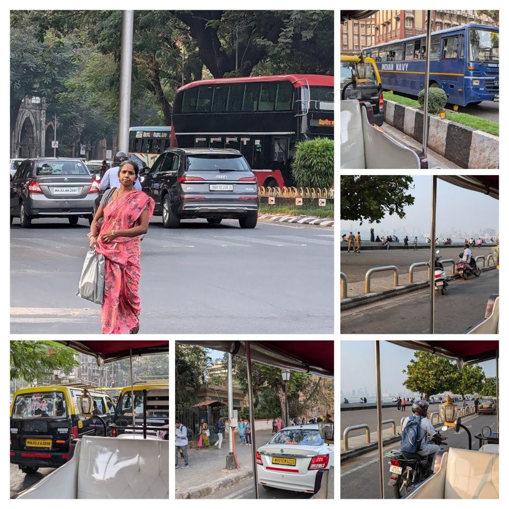 Postscript: Did I say “sedate?” Um…..not quite. Arlene, Ellen and I got aboard a motorized carriage for a ride around Mumbai. Chaotic, cacophonous, crazy! Traffic from hell, constant horn sounding, stops and starts and cars and motorbikes weaving in and out (traffic rules appear to be advisory only).