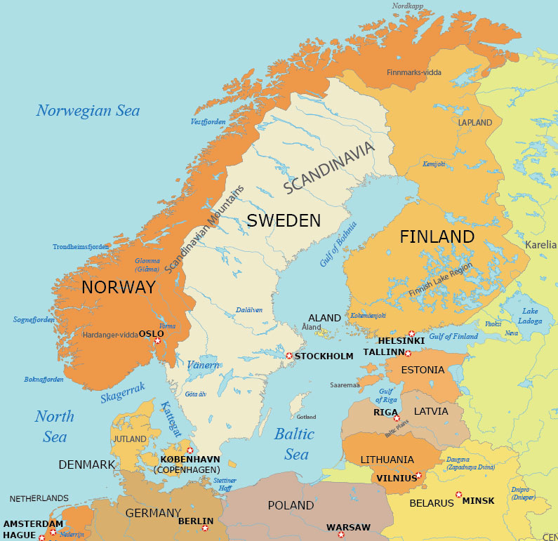 Technically, “Scandinavia” refers to Denmark, Norway and Sweden. Finland is actually a “Nordic” (not “Scandinavian”) country. But most people consider all these “Northern Europe” countries to be Scandinavia, so we will too. Estonia is a “Baltic” state, but what the hell……