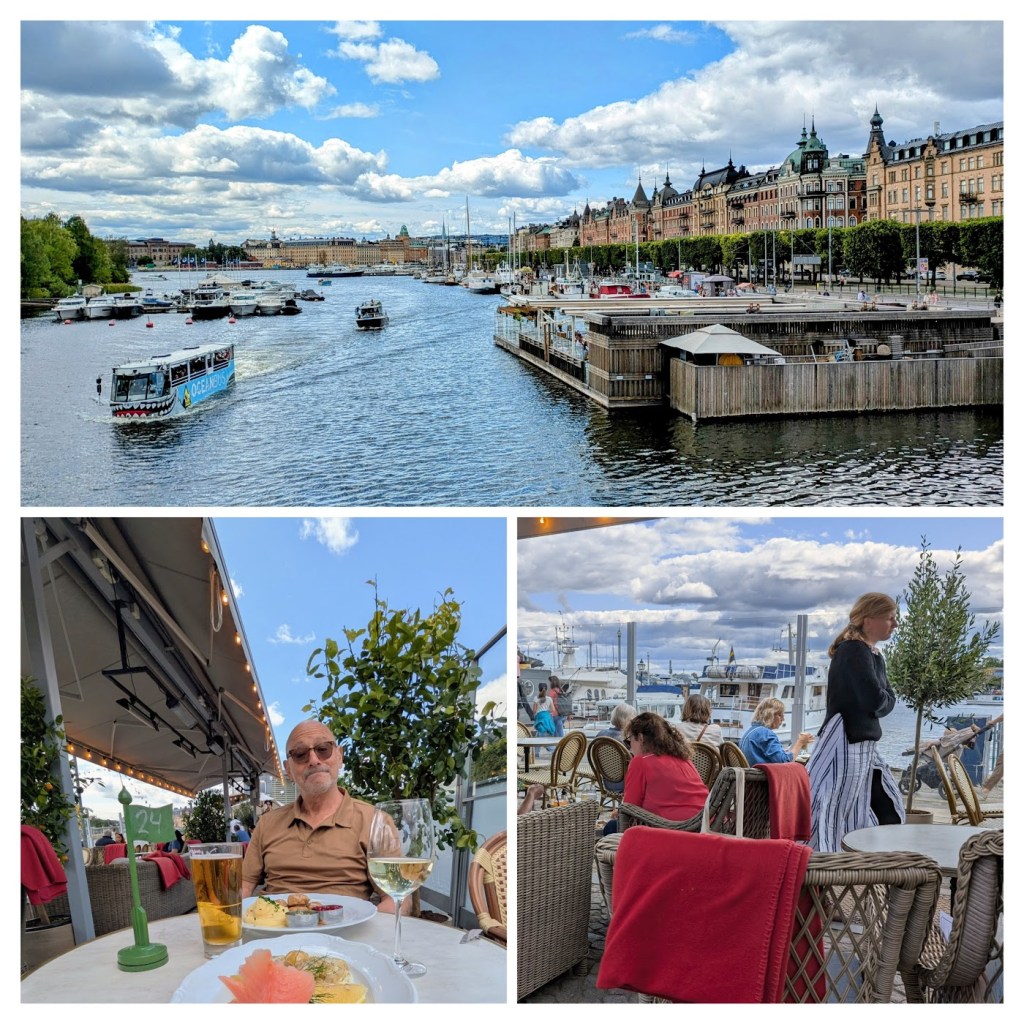 Back over the bridge from Skansen, lunch was at a waterside restaurant where I had the opportunity (after a 20-year hiatus) to savor köttbullar (Swedish meatballs), while Stef had rökt lax (smoked salmon).