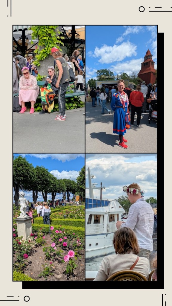 The No. 7 tram was crammed with people heading out to Skansen, many of them wearing flowers in their hair. This is meant to symbolize fertility, rebirth and the joy of the summer season. There also were people dressed in traditional Swedish costume.