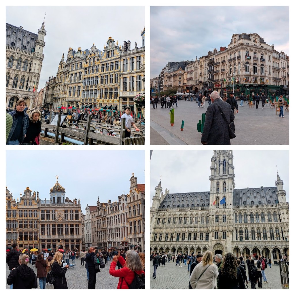 By contrast, we slept in again this morning, had a leisurely breakfast over the on-line New York Times, did some exercising, and then took the Métro to the Gare Centrale again, and walking to the Grande Place to take Rick Steves’ self-guided walking tour of the area: