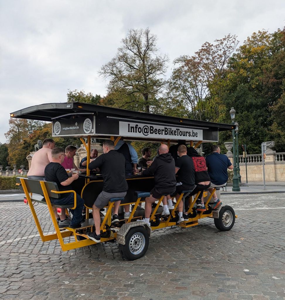 Speaking of wheels, the pièce de résistance of our Upper Town walk was the sight of a vehicle pedaled by all of its occupants, who were simultaneously drinking beer and singing at the tops of their lungs: