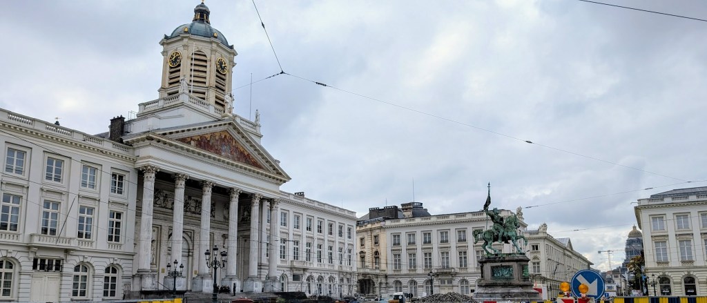 Godfrey’s statue (above, lower right) is in front of the Eglise Saint-Jacques-sur-Coudenberg on the the historic Place Royale/Koningsplein, in the Royal Quarter of Brussels. It served as the royal residence until the 1800s.
